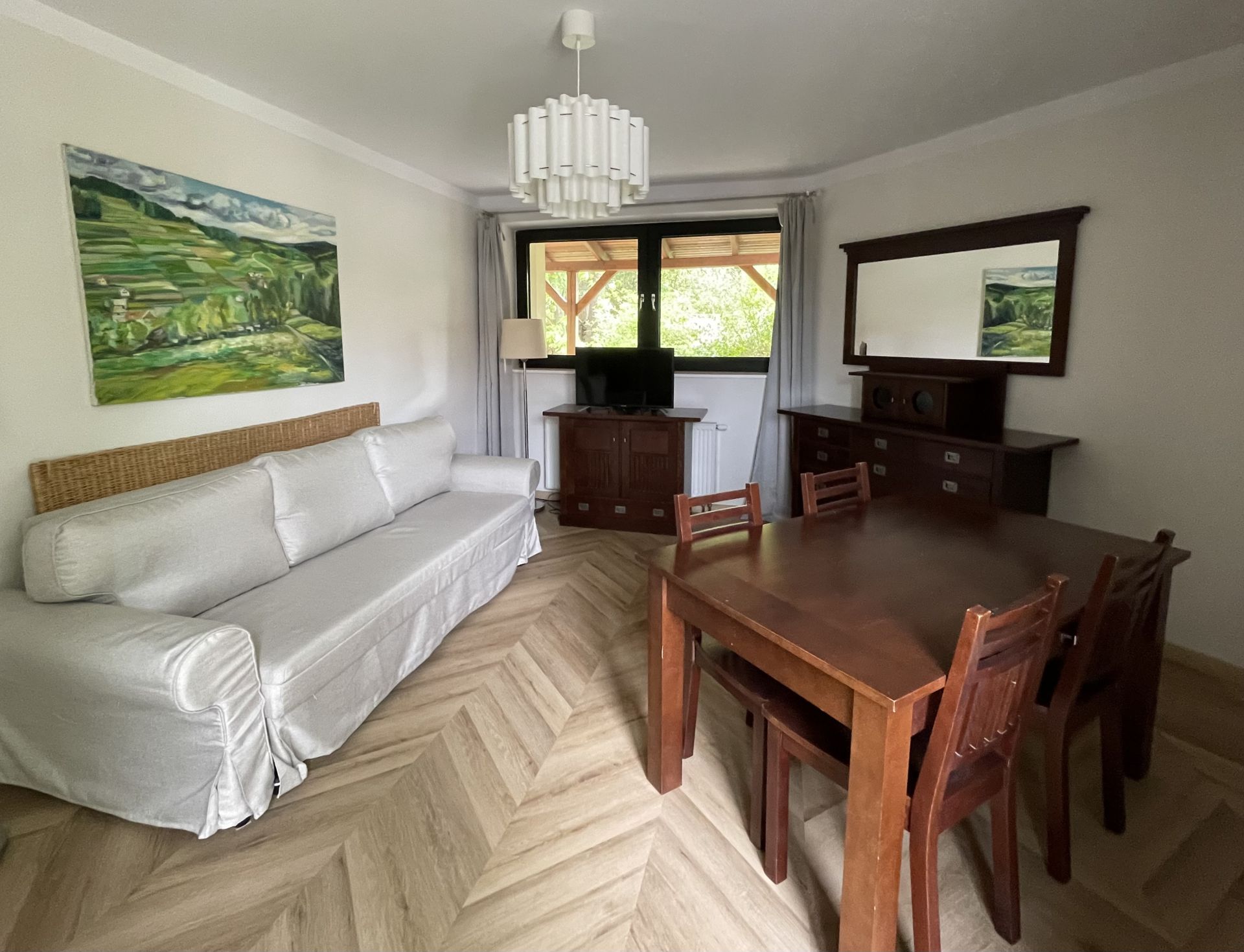 - pokój dzienny z dużym stołem, aneksem kuchennym + rozkładana kanapa (2-os.)