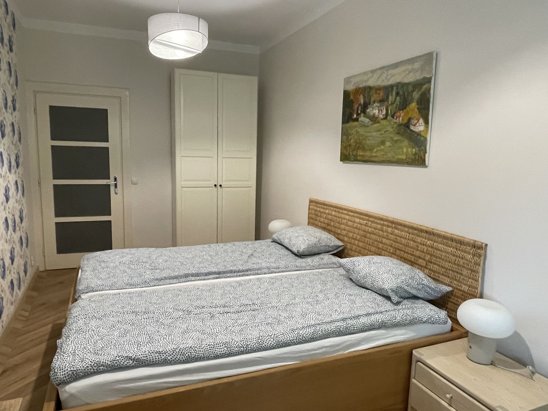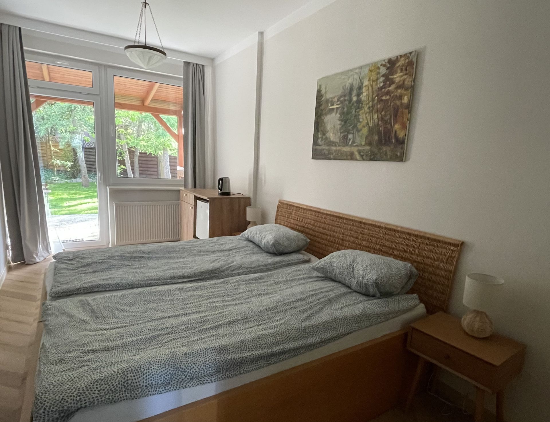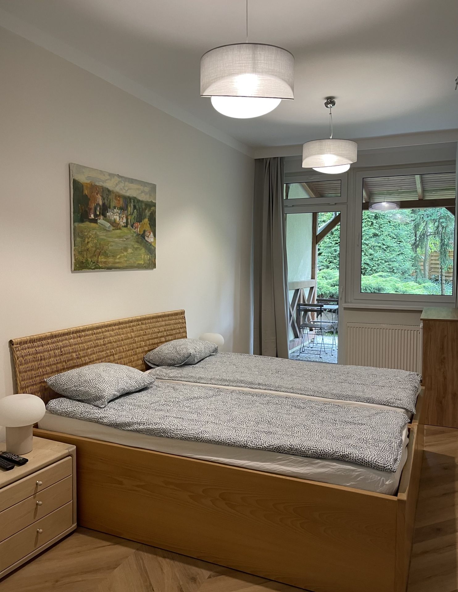 - sypialnia z 2-os. łóżkiem z bezpośrednim wyjściem do ogrodu